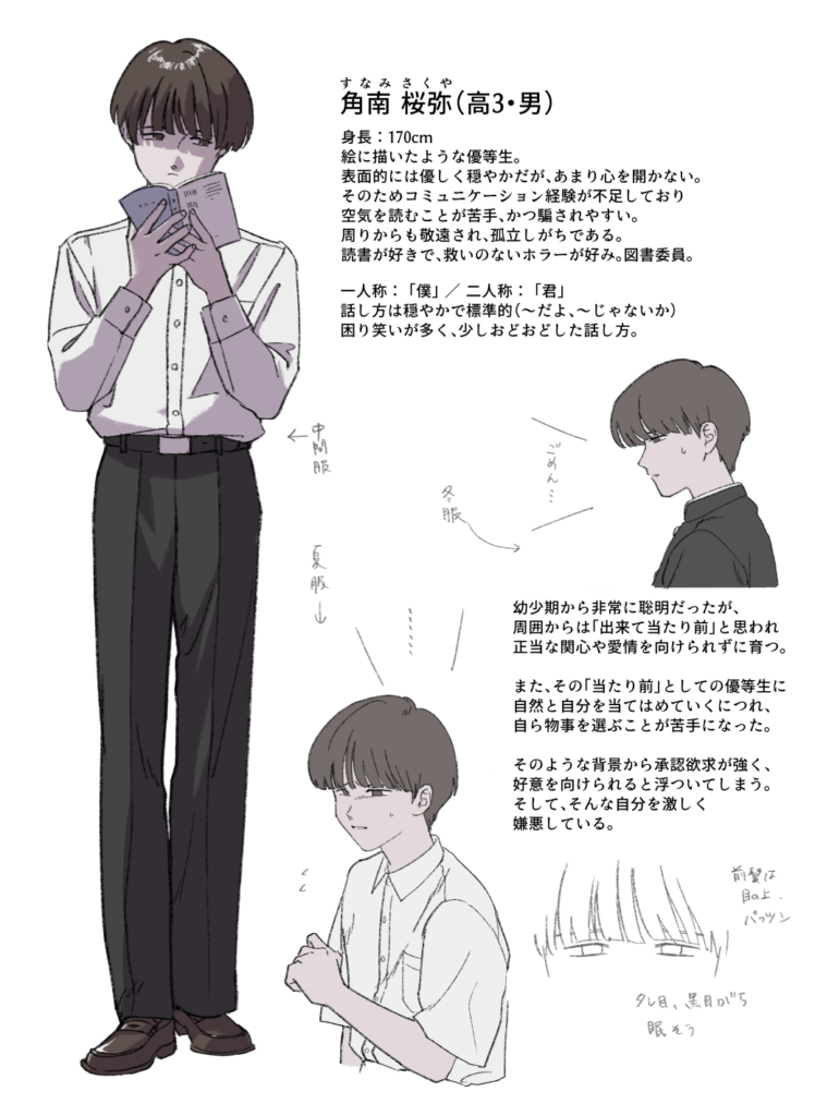 いかにも儚い系の男子を描こうと思ってだいぶ前に作ってた、色素が薄い人。